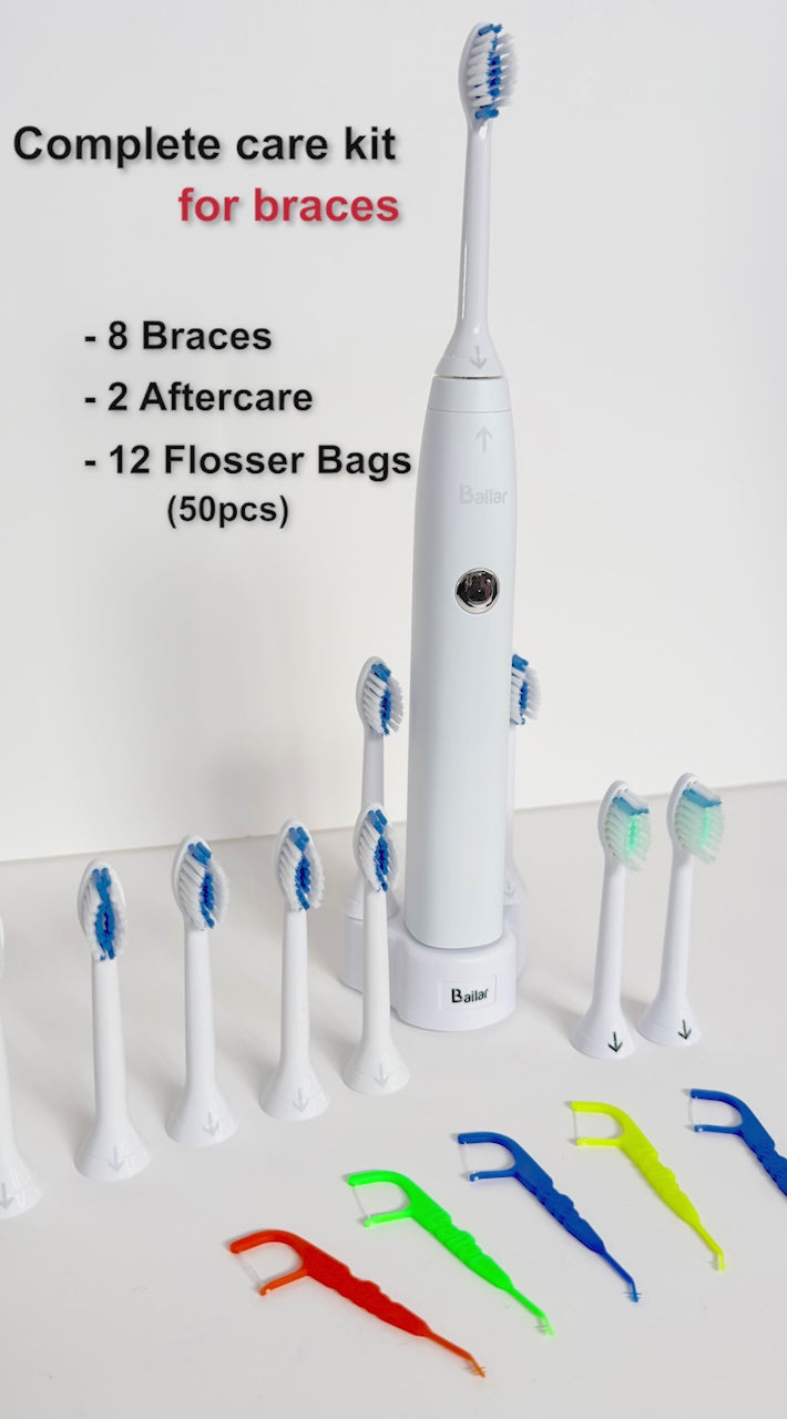 Complete Care Kit for Braces, Electric Toothbrush, Rechargeable with 8 Heads Bonus 2 AFTERCARE